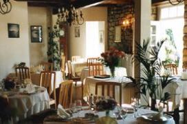 Salle avec poutres apparentes et mur de pierres pouvant accueillir jusqu'à 60 personnes.